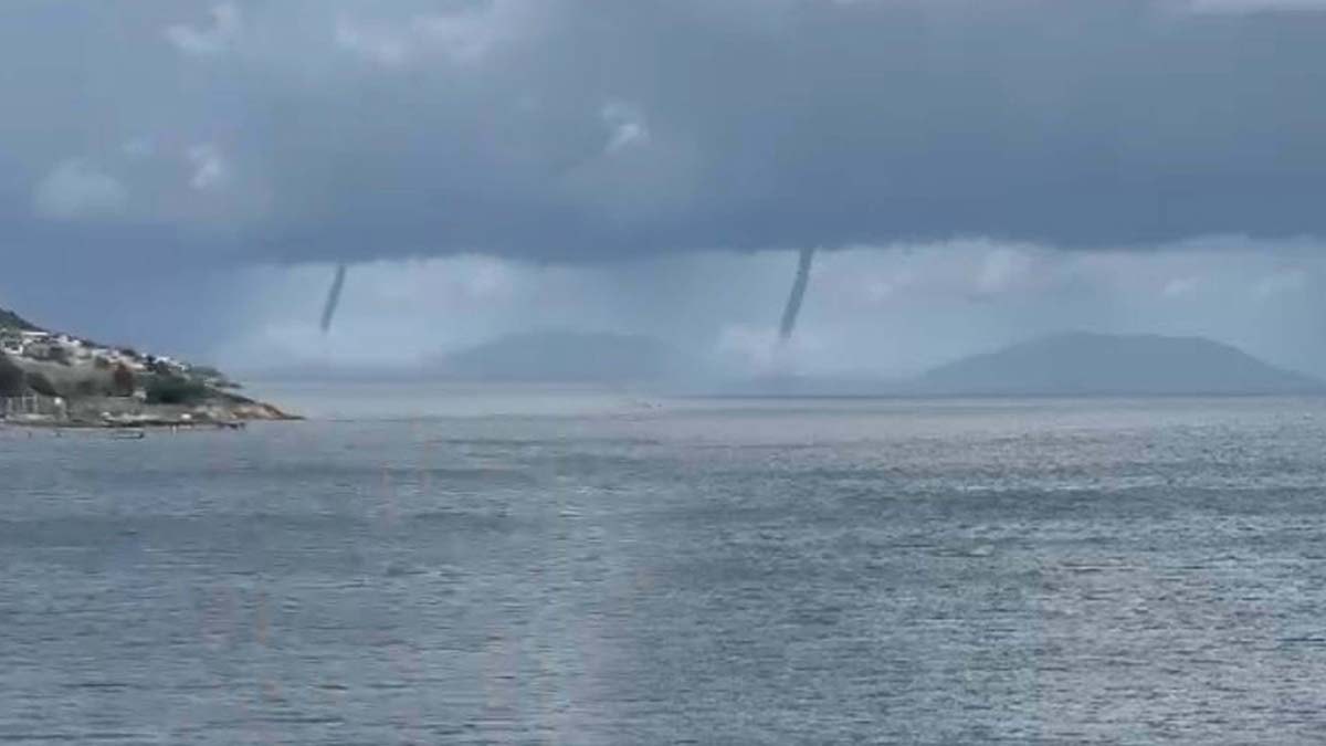 Kentte aralıklarla yağmur sürerken, Foça'nın Yenifoça Mahallesi açıklarında bu sabah hortum oluştuğu gözlendi. O anlar, otomobilinde yolculuk yapan kişi tarafından cep telefonu ile görüntülendi.
