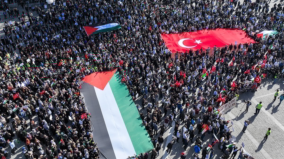 Cuma namazı sonrası İHH İnsani Yardım Vakfı, Umran Hareketi, İnsan ve Medeniyet Derneği, Medeniyet Vakfı, İnsan ve Değer Hareketi, İstikamet Vakfı ve MAZLUMDER üyeleri, ellerindeki Türk ve Filistin bayraklarıyla Beyazıt Meydanı'nda toplandı.