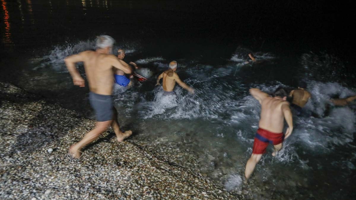 Antalya'da kendilerini yaz kış denize girenler grubu olarak tanımlayan, aralarında doktor ve avukatların da olduğu bir grup vatandaş, yeni yıla denizde girme geleneğini bozmadı. 2024ü Konyaaltı Sahilinde karşılayan yaklaşık 20 kişi, sahilde ateş yakıp bir süre sohbet etti.
