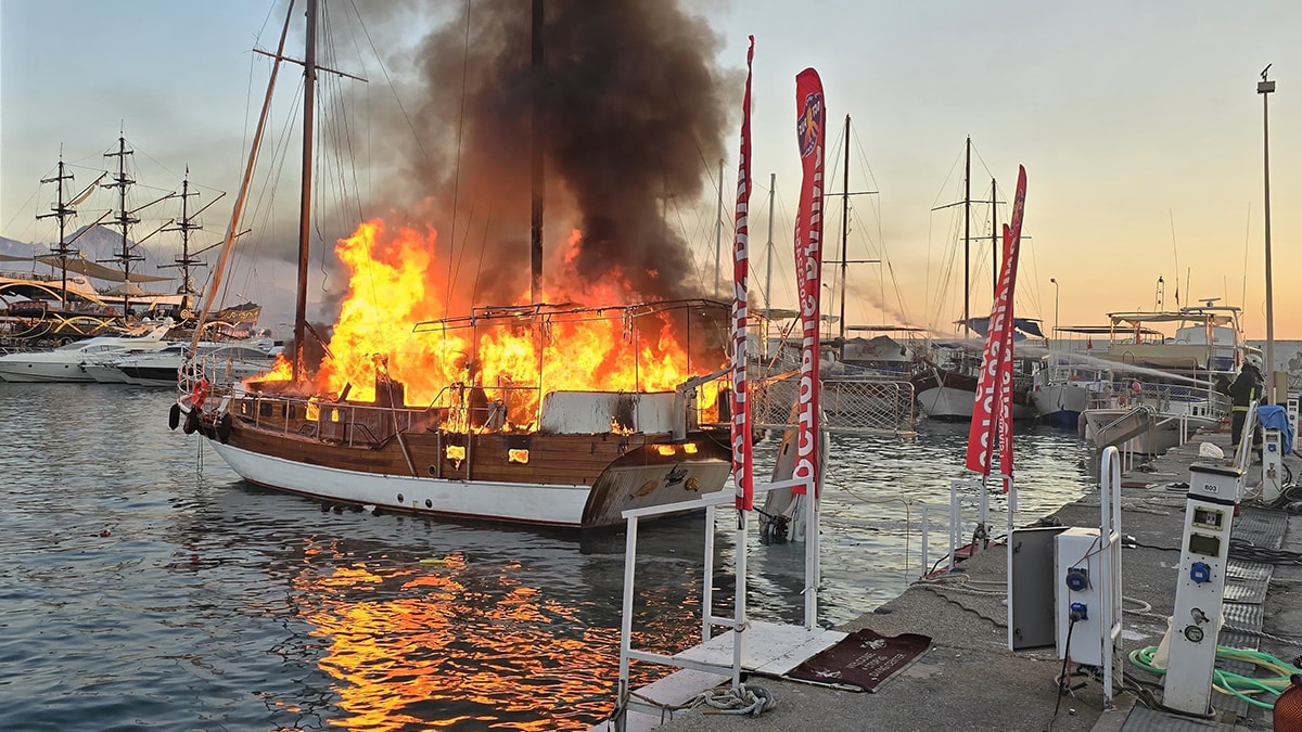 Kemer Marina'daki Süleyman Aydoğmuş'a ait "Hilal Ay" adlı gezi teknesinde henüz belirlenemeyen nedenle yangın çıktı. İhbar üzerine bölgeye itfaiye ekibi yönlendirildi.