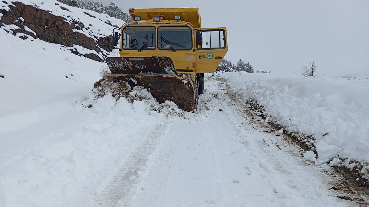İl Özel İdaresi ekiplerince yolların ulaşıma açılması için çalışma gerçekleştiriliyor.