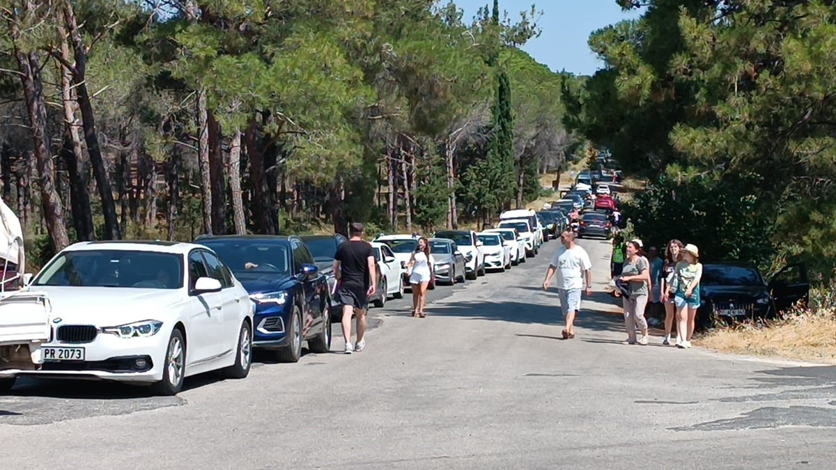 Bazı vatandaşlar, sıcak havaya rağmen araçlarından inerek çevrede dolaşmayı tercih etti, bazıları ise yanlarına aldıkları kamp sandalyeleriyle ağaç altında bekledi.