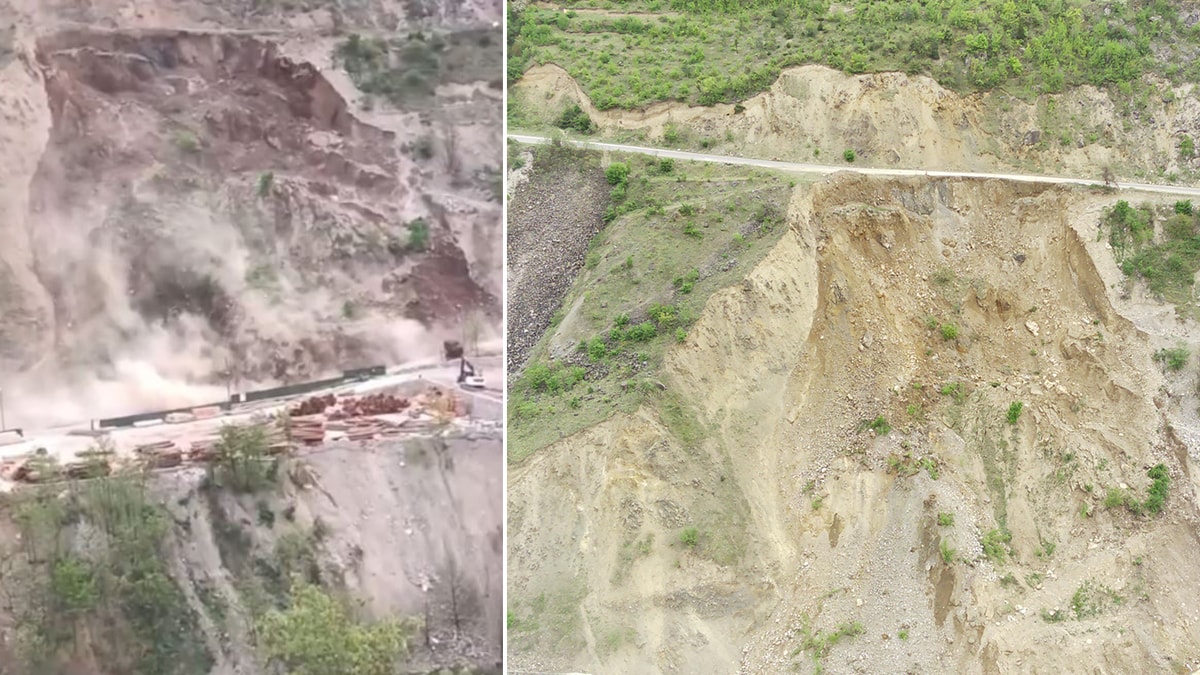 Görüntülerde; önce toz çıktığı görülen yamaçta saniyeler içinde tonlarca toprak kütlesinin hareketlenip kara yoluna aktığı, etrafı kaplayan tozun açılması sonrası yamaçta çukur oluştuğu yer alırken, bu anları kayda alan kadının panik yaşadığı, çocukların da ağladığı duyuluyor.