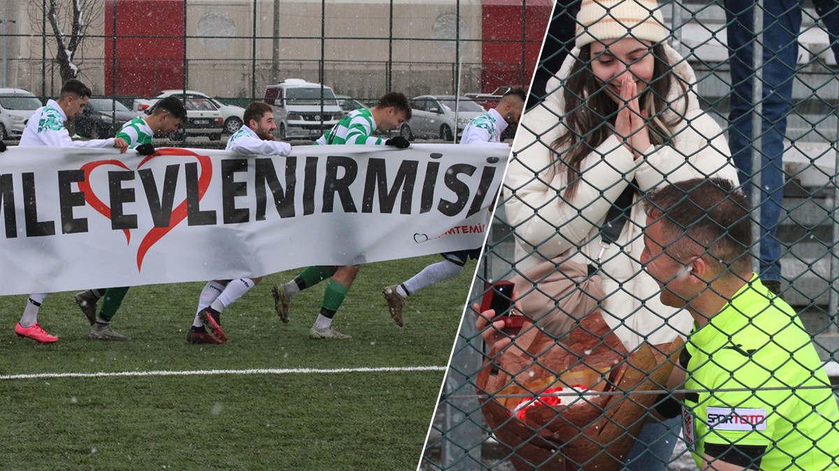 Maçın hakemi Özkan Elikaya da elinde çiçek ve yüzükle sahaya çıkarak tribünden kendisini izleyen kız arkadaşı Kübra Şengül'ün yanına gitti. Hakem, burada diz çöküp sevgilisine evlilik teklifi etti. Erkek arkadaşının sürpriz evlilik teklifi karşısında büyük mutluluk yaşayan genç kadın teklife Evet dedi. Kübra Şengül'ün, yüzüğü parmağına takıldığı sırada seyirciler ve futbolcular çifti alkışlayarak tebrik etti.