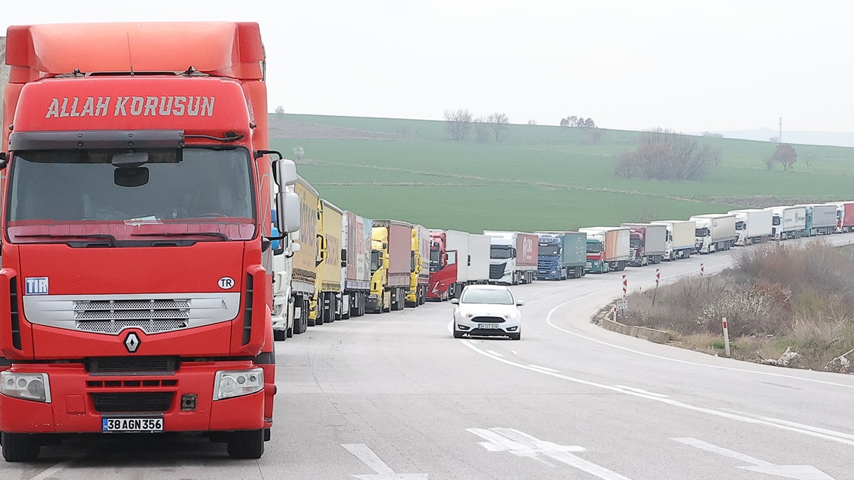 Hamzabeyli Sınır Kapısı'nda Avrupa’ya geçiş için yüzlerce tır sürücüsü araçlarında bekleyişlerini sürdürüyor.