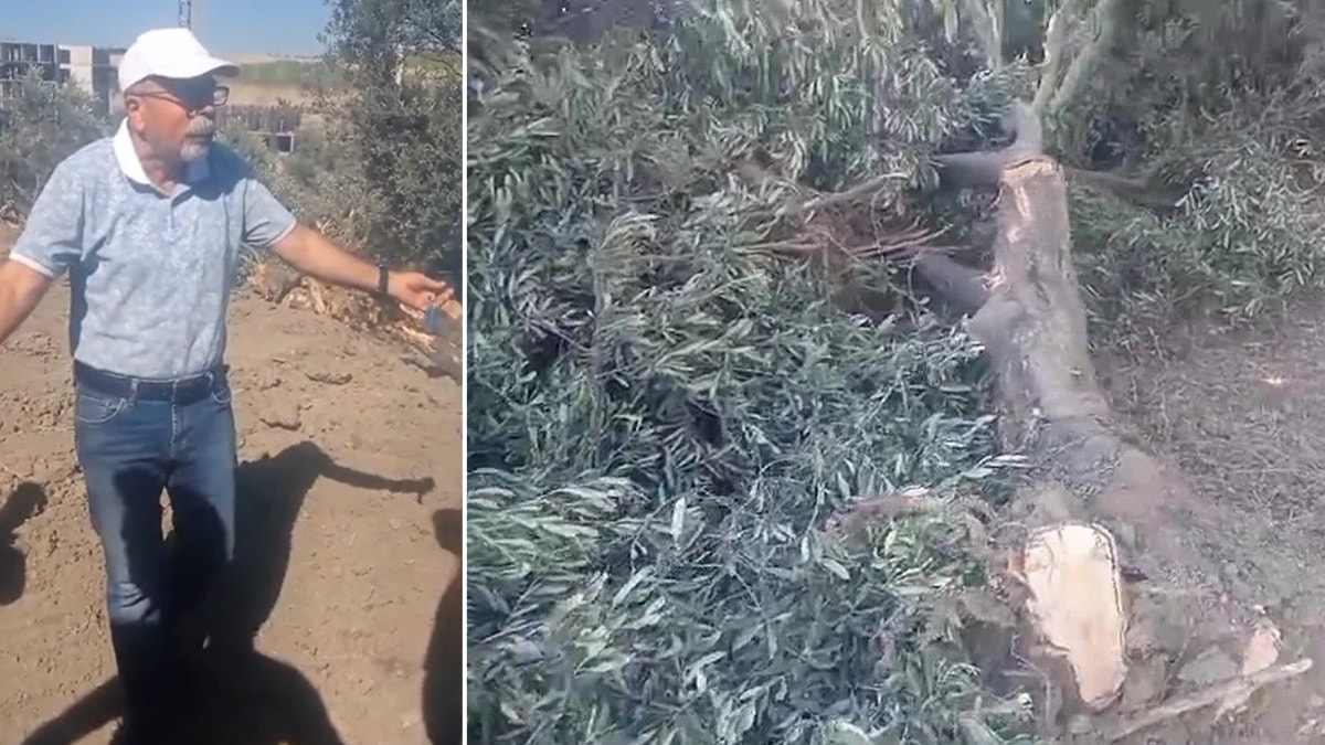 Zeytin ağaçlarının sahiplerine haber verilmeden söküldüğünü söyleyen Betül Saldıray, "Şu katliama bakın. Buradan TOKİ'ler su alacak diye zeytin ağaçlarına kıymışlar. Biz zeytinlerimizi koparırken, toplarken bir dalına bile kıyamıyoruz. Bu adalet mi? Şu talana bakın. Su hattı geçecek diye asırlık ağaçları söküyorlar" diye tepkisini dile getirdi.