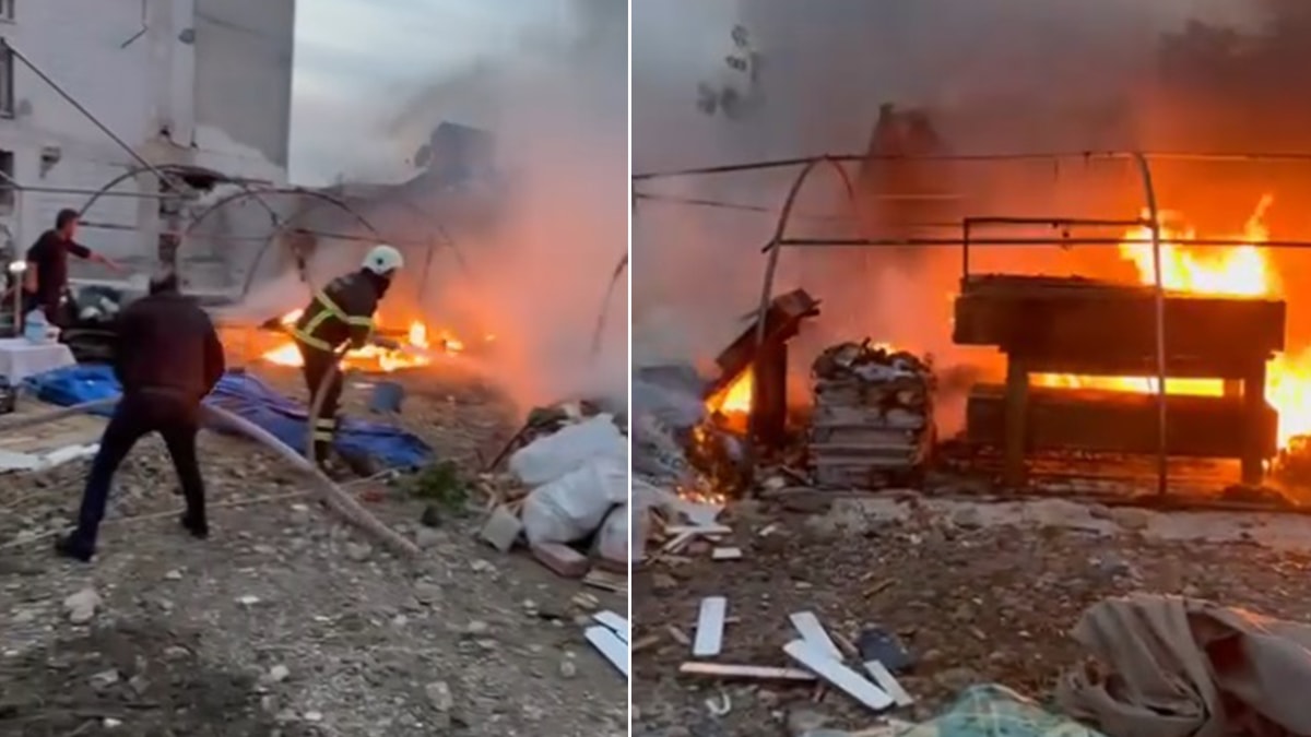 Yangın, ilçeye bağlı Yeni Mahalledeki Ahmet Rasim Sokakta kurulan çadırlarda çıktı. İddiaya göre, Necmettin Celeb ve Ahmet Celeb kardeşlerin arsalarına kurduğu çadırlardan bir anda alevler yükselmeye başladı. İhbar üzerine olay yerine itfaiye ve sağlık ekipleri sevk edildi. Hızla yükselen alevler toplamda 5 çadıra sıçradı. İtfaiye ekiplerinin yoğun müdahalesi sonucu yangın kısa sürede kontrol altına alınırken, olayda yaralanan olmadı. Kül olan çadırdaki depremzedelerin eşyaları ise kullanılamaz hale geldi.