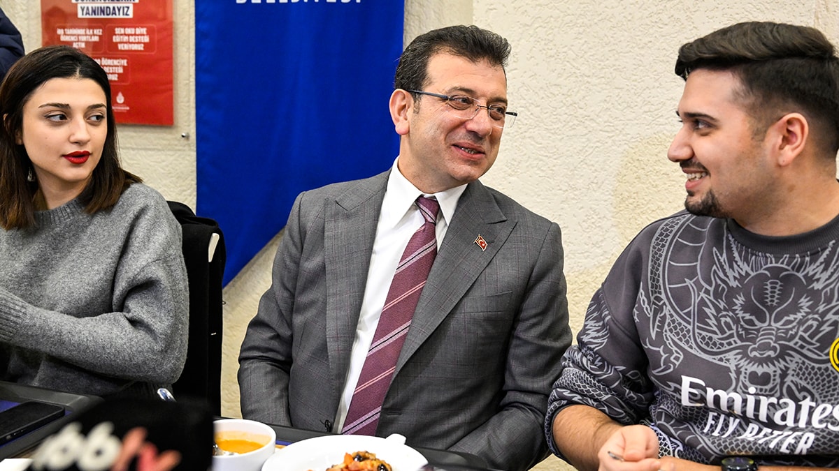 İBB Başkanı Ekrem İmamoğlu, Batı Mahallesi Sabri Taşkın Caddesi'nde bulunan lokantada, öğrencilerin tabldotlarına yemek servisi yaptı, onlarla beraber yemek yedi.