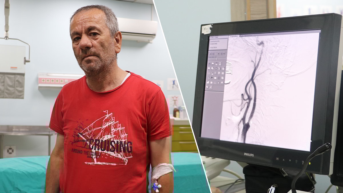 Baş dönmesi ve konuşmada yavaşlama şikayetiyle hastaneye başvuran Cuma Uçar'ın, sağdaki şah damarında yüzde 90 oranında darlık saptandı. Atatürk Sanatoryum Eğitim ve Araştırma Hastanesi'nde kapalı yolla iğne deliğinden girilerek Uçar'a anjiyo yapıldı. Uçar, başarılı geçen operasyonun ardından sağlığına kavuştu. Operasyonu yapan Doç. Dr. Emin Çakmakçı, baş dönmesi ve konuşmada yavaşlama şikayetiyle 22 Temmuz'da hastaneye başvuran Cuma Uçar'ın operasyonunun başarıyla sonuçlandığını söyledi. Doç. Dr. Çakmakçı, "Hastamızın bilinen yüksek tansiyon ve 10 yıl önce geçirmiş olduğu inme hikayesi var. Tetkikler esnasında sağdaki şah damarında ileri derecede darlık saptandı. Bu sağ damarındaki darlığa stent dediğimiz, darlığı normal haline getiren, beyin kan akımını düzenleyen bir sistem implant ettik. Bu işlem lokal anestezi altında yapılabiliyor" dedi.