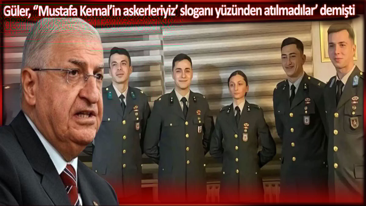 Milli Savunma Bakanı Yaşar Güler, bakanlığının bütçesinin görüşüldüğü TBMM’deki Plan ve Bütçe Komisyonu’nda çıkan tartışma üzerine, kılıç çatıp “Mustafa Kemal’in askerleriyiz” sloganı atan 5 teğmenin ihracına ilişkin, “Bir, geçen sene atılan teğmenlerimizin hiçbirisine, ‘Atatürk’ün askerleriyiz’ dediği için hiçbir soru sorulmadı. İki, ‘neden kılıç çektiniz’ diye hiçbir soru sorulmadı. Tören bittiği anda bütün aileler orada kendi çocuklarıyla sarılıp öpüşmek için tören alanına girmiş durumda. Bu vaziyetteyken birinci olan kız teğmenimiz geliyor mikrofonun başına, ‘Aileler lütfen tören alanını terk edin’ diyor. Böyle bir hakkı var mı” ifadelerini kullandı.