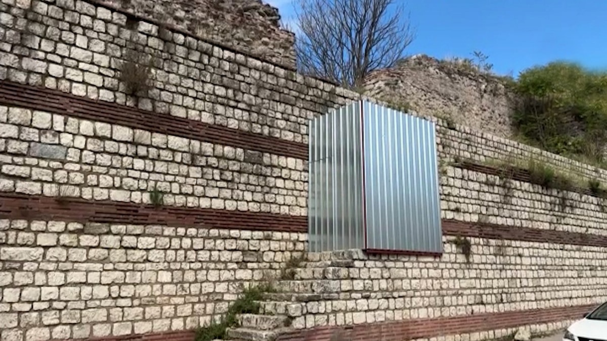 Güvenlik önlemleri kapsamında surlara çıkan merdivenlerin demir bariyerlerle kapatıldığı görüldü.
