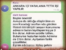 -Whatsapp fake numara isteyen DM. Sahte para isteyen DM”, “Konya Erenler’de olan var mı? Suikast atacak 2 kişi lazım. Parası neyse hallederiz, “Ankara içi yaralama, tetik işi yapılır.”