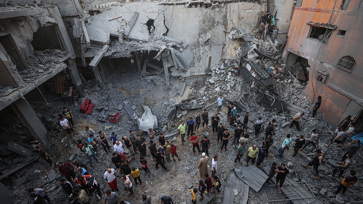 Gazze'nin Han Yunus kentine düzenlenen saldırısı sonucu, bölgedeki binalar kullanılmaz hala geldi. Sivil savunma ekipleri ve bölge sakinleri, arama kurtarma çalışması başlattı.
