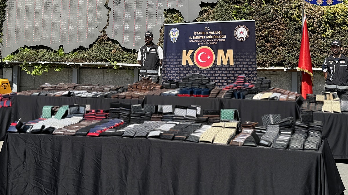 Ele geçirilen kaçak ürünler, İstanbul Emniyet Müdürlüğünün Vatan Yerleşkesi'nde sergilendi.