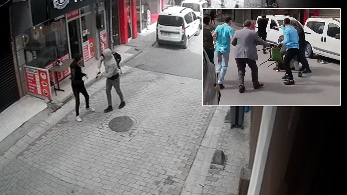 Kuyumcu dükkanı önünde yaşananların güvenlik kamerası görüntüleri ortaya çıktı. Görüntülerde 3 soyguncudan biri kapı önünde yakalanıp dövülürken silah çeken diğer 2 soyguncuyu esnaf sandalye ile kovalıyor. Esnafın üzerine geldiğini gören 2 soyguncu hızla uzaklaşıyor.