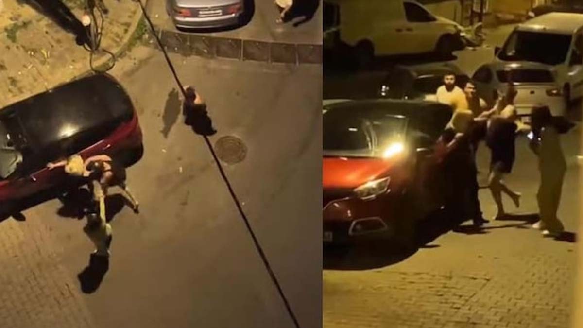 Bağırmaya devam eden kadına, koşarak gelen bir erkek saldırdı. Kadının kafasına vuran şüpheliyi arkadaşı sarılarak uzaklaştırmaya çalıştı.