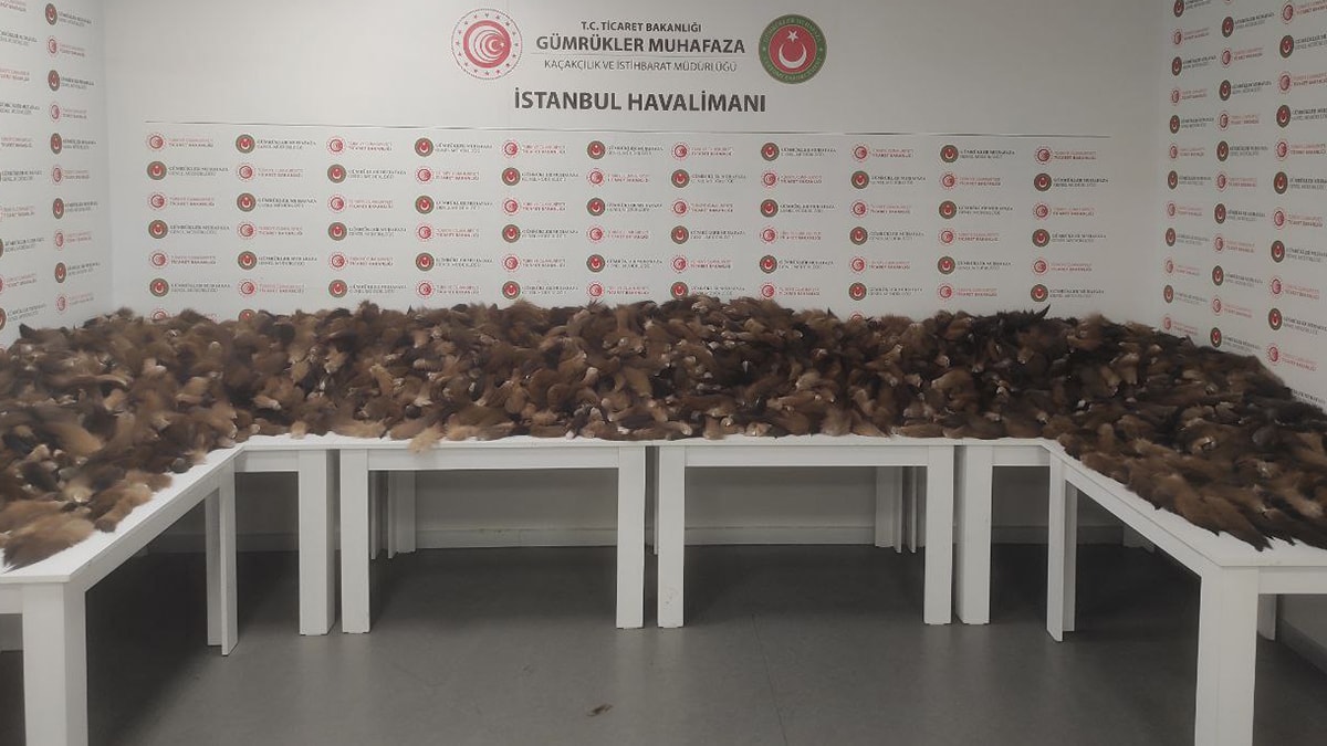 Ele geçirilen tilki kuyrukları İstanbul Havalimanı Gümrük Muhafaza Kaçakçılık ve İstihbarat Bölge Amirliği'nde sergilendi.