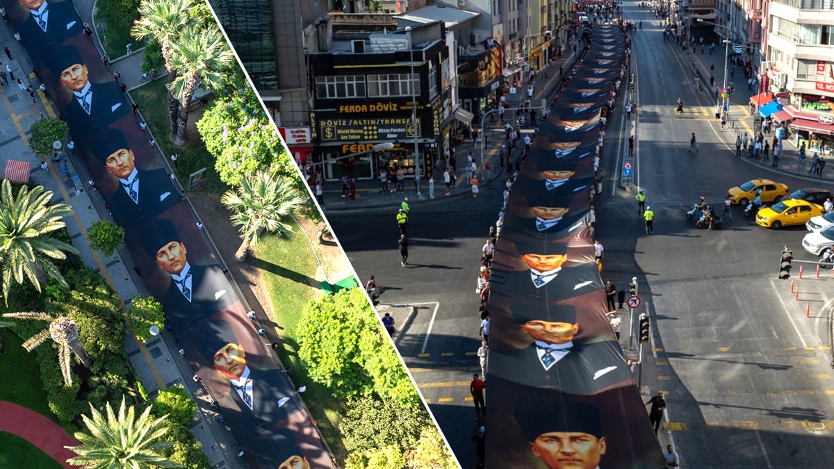 Yürüyüşte, vatandaşlar tarafından 350 metrelik Atatürk posteri taşındı. Kutlamalar Cumhuriyet Meydanı’nda devam etti.