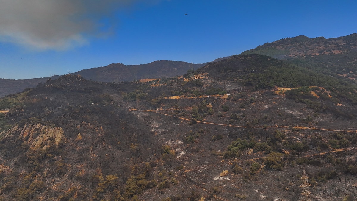 Yangının 3’üncü gününde bölgedeki acı tablo, gün ağarınca ortaya çıktı. Yanan alanlar, dronla havadan görüntülendi.