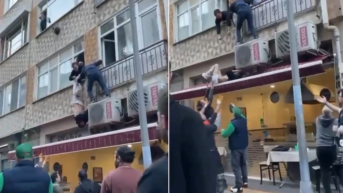 Hastanenin karşısında bulunan eve zorla giren şüpheli, vatandaşların müdahalesinin ardından pencereden atlayıp kaçmak istediği sırada bir kişi tarafından sopayla darbedildi.