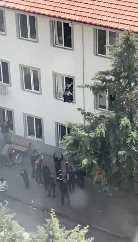 Saldırıya ilişkin ortaya çıkan görüntülerde peş peşe silah seslerinin duyulduğu, panik yaşayan bazı öğrencilerin camlardan atlayarak kaçmaya çalıştığı görüldü.