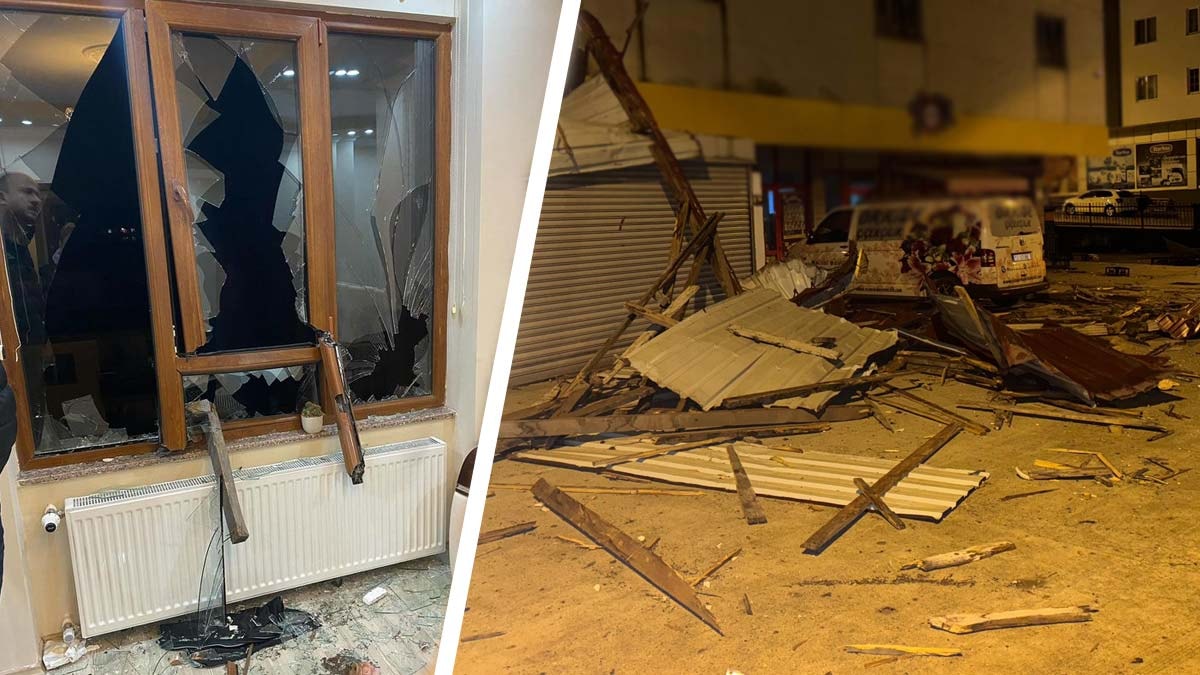 Site önünde üzerine uçan çatı parçasının düşen park halinde bir otomobilde hasar oluştu. İhbar üzerine bölgeye gelen polis, itfaiye ve belediye ekipleri önlem alarak temizlik çalışması başlattı.