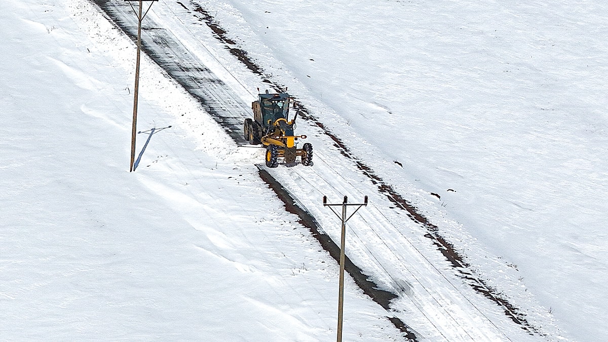 İl Özel İdaresi ekipleri, bölgede etkili olan tipi nedeniyle yol açma çalışmalarını güçlükle sürdürüyor.