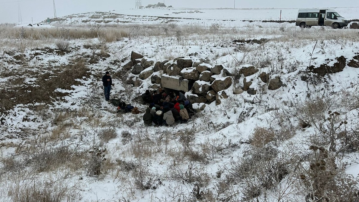 Kar yağışı ve soğuk hava nedeniyle bazıları donma tehlikesi geçiren göçmenler, İl Jandarma Komutanlığı ekiplerine teslim edildi.