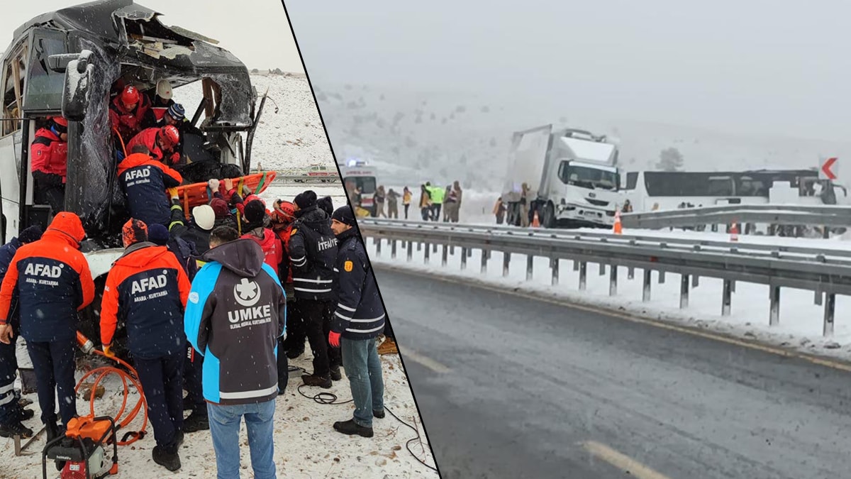 Öte yandan kazanın meydana geldiği bölgede, kar, sis ve buzlanma etkili oluyor.