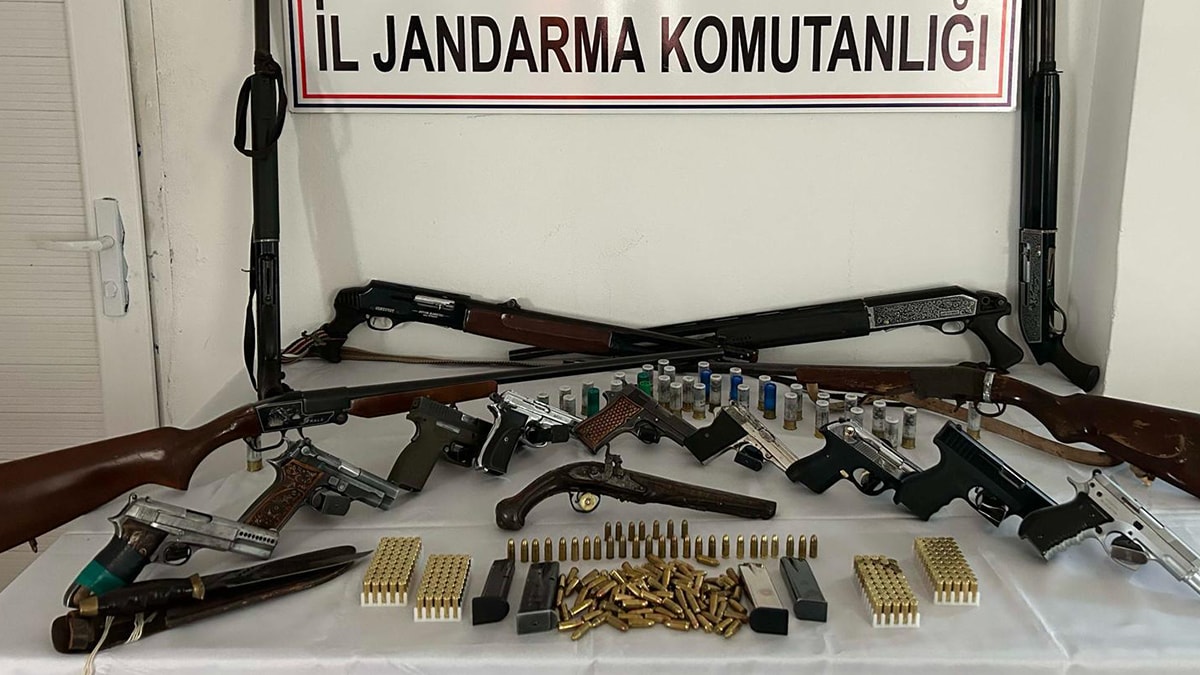 Şüpheliler gözaltına alınırken, adreslerinde yapılan aramalarda 2si kurusıkı 10 tabanca, 6 av tüfeği, 13 tabanca şarjörü, 311 tabanca mermisi, 64 av tüfeği fişeği ve 1 kasatura ele geçirildi.