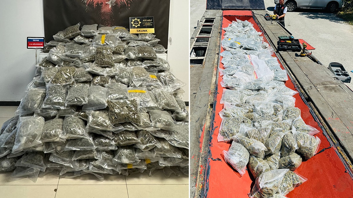 Otoyolda durdurulan bir tırda narkotik dedektör köpeği "Talisca" ile yapılan aramada, dorsenin taban kısmına gizlenmiş 116 kilogram sentetik uyuşturucu ele geçirildi.