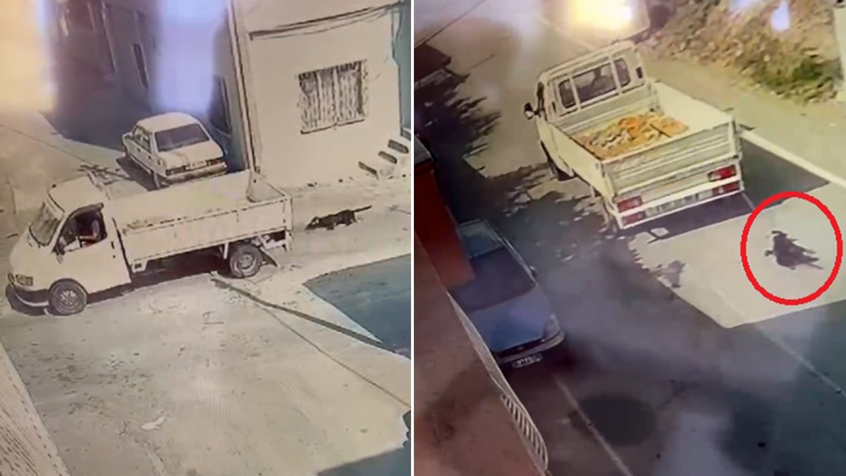 Olay, sabah saatlerinde İskenderun ilçesi Kocatepe Mahallesi'nde meydana geldi. Bir sürücünün kamyonetin arkasına bağladığı köpeği sürükleyerek götürmesi, güvenlik kameralarına yansıdı.