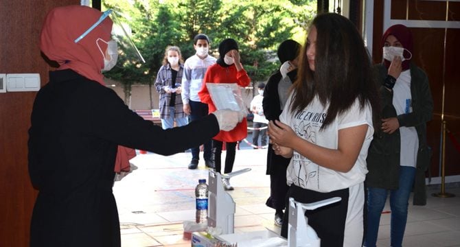 Kartal TOKİ Soğanlık Ortaokulunda sınava girmek için gelen öğrenciler okul içerisine sosyal mesafeye dikkat edilerek alındı. Okulun girişine yerleştirilen dezenfektanı kullanan öğrenciler ardından okulun içerisine geldi. Maskesi bulunmaya öğrencilere okul girişinde maske verildi. Polis ekipleri çocukları sınava giren velilere sosyal mesafeye dikkat etmeleri konusunda uyarılarda bulundu.