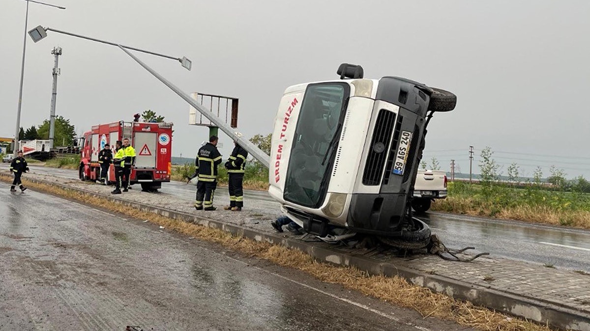 Kaza, Muratlı’nın İstiklal-Kurtpınar Organize Sanayi Bölgesi Mahallesi’nde meydana geldi. M.B idaresindeki 59 AGS 240 plakalı fabrika servis minibüsünün lastiği patladı. Sürücüsünün hakimiyetini kaybettiği minibüs, refüjdeki aydınlatma direğine çarparak devrildi.