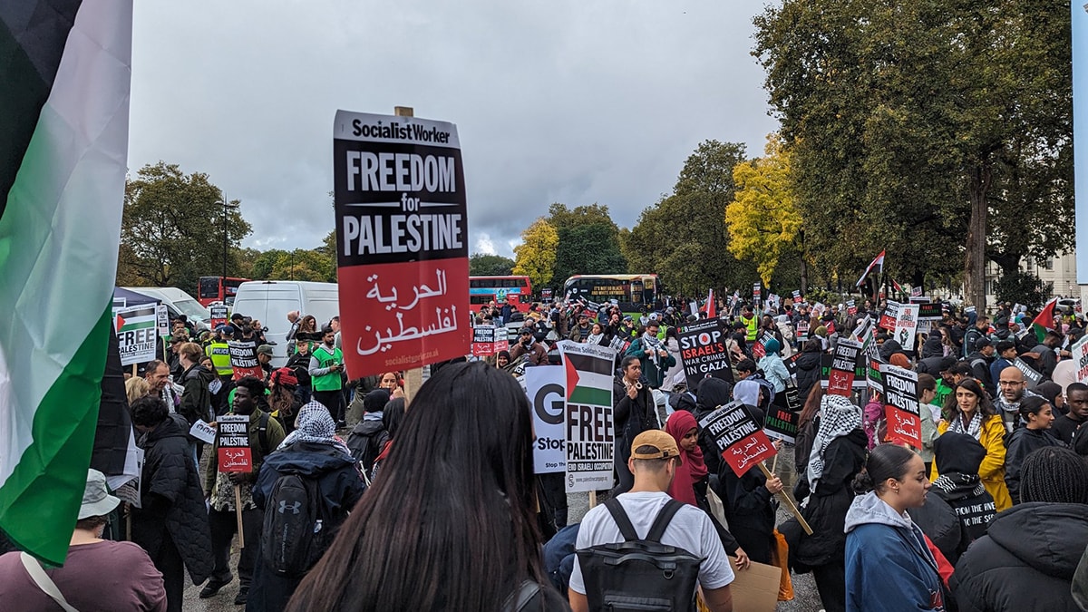 İngiltere merkezli Stop the War (savaşı durdurun) adlı savaş karşıtı sivil toplum kuruluşu, 16 Ekimde halka çağrı yapmış ve İngiliz halkını, başkent Londrada Filistinlileri desteklemeye çağırmıştı. Binlerce kişi bugün Londrada toplanarak Filistine destek çağrısı sloganları attı.