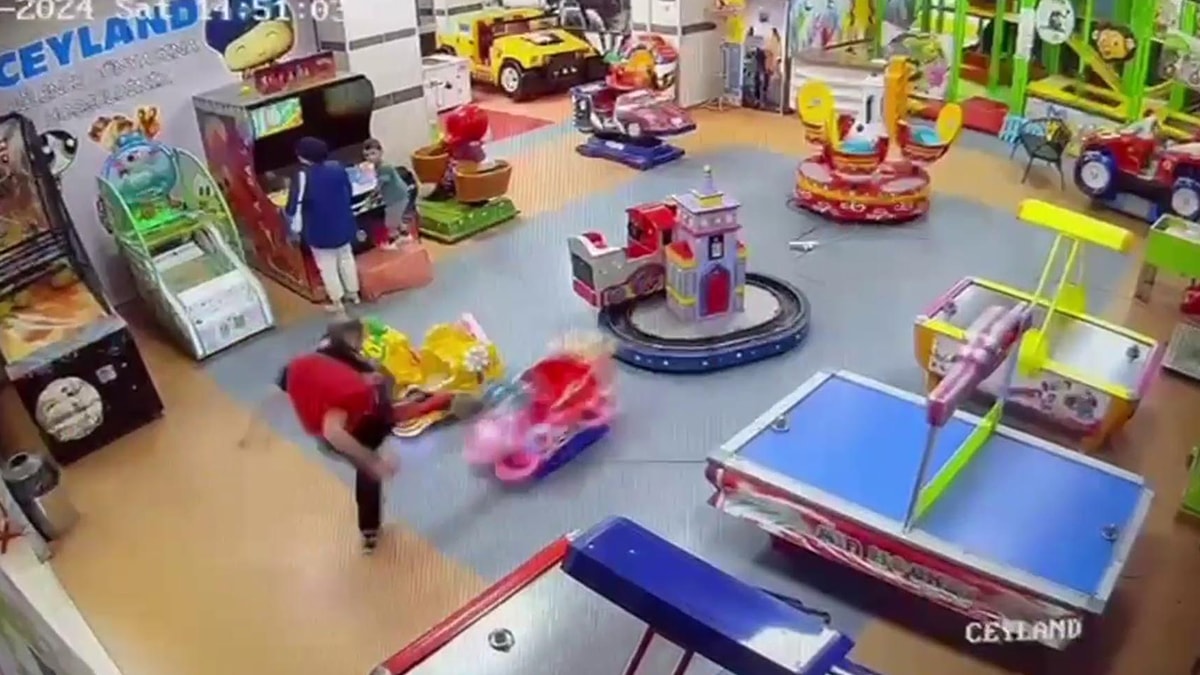 Kentte, madde bağımlısı olduğu iddia edilen kişi, alışveriş merkezinin çocuk oyun alanına girip makineleri tahrip etti. Güvenlik kameralarına da yansıyan olay sırasında içerideki anne ve çocuğunun tedirginlik yaşadığı gözlendi. Oyun alanının kapısının camını da kıran saldırgan, diğer iş yerlerine de saldırdı.