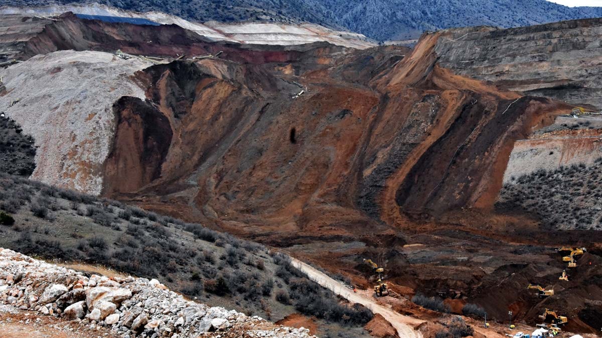 "Bu maden ocağı 940 hektarlık bir arazi. Bugün sizlerle beraber çalışmaların olduğu yerden aziz milletimize konuşuyoruz. Bu hemen ardımızda görmüş olduğunuz toplam liç alanı dediğimiz yerde yaklaşık 35 milyon metreküplük bir toprak kütlesi var ve 14.28 de o vakitte toprağın kaydığı zamanda hemen bu ardımızdaki sabırlı dere alanı dediğimiz yere yaklaşık 5 milyon metreküplük bir toprak kayması ile yeni bir kütle vadiye doğru geldi. Hemen arkasındaki Mangan ocağı dediğimiz yer var ki oradan geliyoruz buraya orada da 1.2 milyon metreküplük bir toprak kayması ile yer değiştirmiş vaziyette. Hemen sırt tarafta yani toplam liç alanın olduğu yerde de devamlı karşı tepelerde iki tane konuşlandırılan jeoradarlarla yaptığımız arama kurtarma ile ilgili çalışmalarımız da arkadaşlarımızın güven ortamında çalışması ile ilgili olma ihtimali olan kaymayı anlık izliyoruz. Arama kurtarma ile ilgili AFAD başından beri 500'ün üzerinde profesyonel arama kurtarma ekibimiz var. 2 bin 700'ü aşmış durumdayız insan gücü olarak. 800 aracımız var en modern en güçlü araçlarımız var. Şunun altını çizmek istiyorum araç ve insan kaynağı olarak hiçbir eksikliğimiz yok ama an ve an arkadaşlarımız buradaki bilim insanlarımızın yol göstericiliğinde istişare ile işçimizden, şoförümüze varıncaya kadar hepimizin tek bir niyeti var bu işi olabilecek en kısa zamanda tamamlamak. Bunun içinde eğer ilave araç ilave insan kaynağı ile bir ihtiyacımız doğuyorsa bilin ki olabilecek en kısa sürede bunu tamamlıyoruz. Şimdi öncelikle 9 canımız şu anda bu toprağın altında. Yakınlarımızın her birini ziyaret ettik. Devamlı da ziyaret ediyoruz. Onlar da zaman zaman buraya geliyorlar. Onların akrabalarından bu maden ocağında çalışan kardeşlerimizde var az önce onlarla tekrardan görüştük. Onların sabrı, anlayışı için minnettarız. Sabra ihtiyacımız var. Sabır şu anda bizim en fazla ihtiyacımız olduğu bir duygu. Bunu da görüyoruz, minnettarız. Ama şunu ifade etmek istiyorum böyle büyük bir toprak kütlesinin hareket ettiği bir ortamda bizim planımız basitçe şu. Çevre Şehircilik ve İklim Değişikliği Bakanlığımızdan arkadaşlarımız ve bilim insanlarımızla beraber hemen bu ardımızda görmüş olduğunuz 5 milyon metreküplük hedef alanda ve arkasındaki mangan alanında toprağı geçici depolama alanı olarak az önce gelmiş olduğumuz ve tamamen Çevre Şehirciliğin bizzat talimatı ile oluşturmuş olduğu güvenli ortama geçici tahliye ediyoruz."