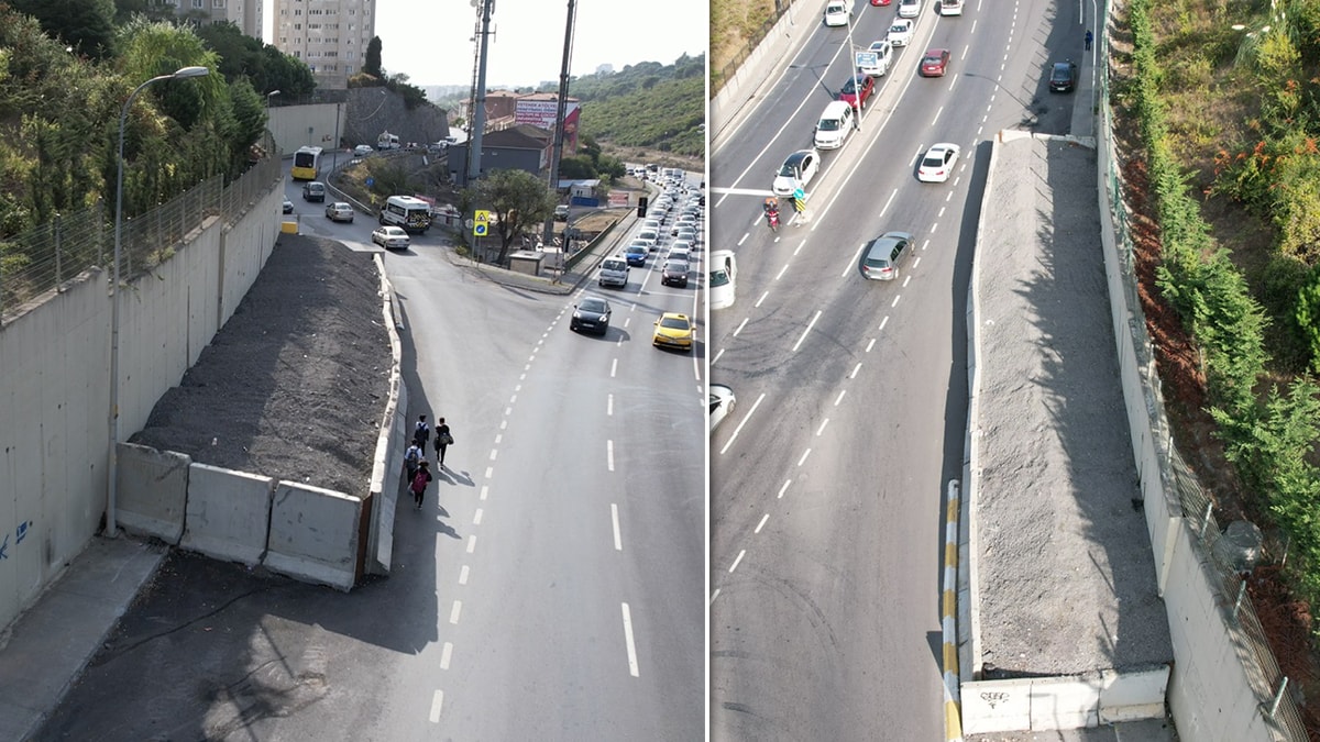 Çocuğunu okuldan alan Evin Deniz, "Buradan yürüyoruz hiç de güvenli değil. Çocuklar buradan geçiyor. Nedenini biz de bilmiyoruz yani. Buranın çatladı duvarı. Yapmadılar. Böyle yarım yamalak bıraktılar. Böyle önlem olmaz ki. Trafik sıkışıyor. Arabayla da gelirken burada çok kaza oluyor. Çocuklar yürürken zorluk çekiyor. Koca çocukları almak zorunda kalıyoruz. Halbuki gelebilirler güvenli olsa. Problem yani. Hep bu yolu kullanıyoruz. 2 tane okul var. Hem ortaokul var hem lise. Bu yüzden küçük oğlumu servise vermek zorunda kaldım. Çünkü yürüyemiyorum bu yoldan" dedi.