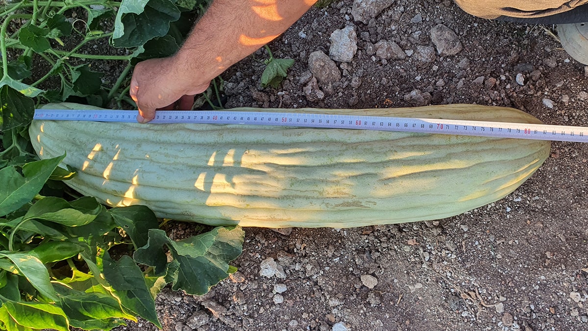Akıncılar Mahallesi'nde, Recep Artuç'un tarlasında yetişen acur, uzunluğu ve ağırlığı ile dikkati çekti.