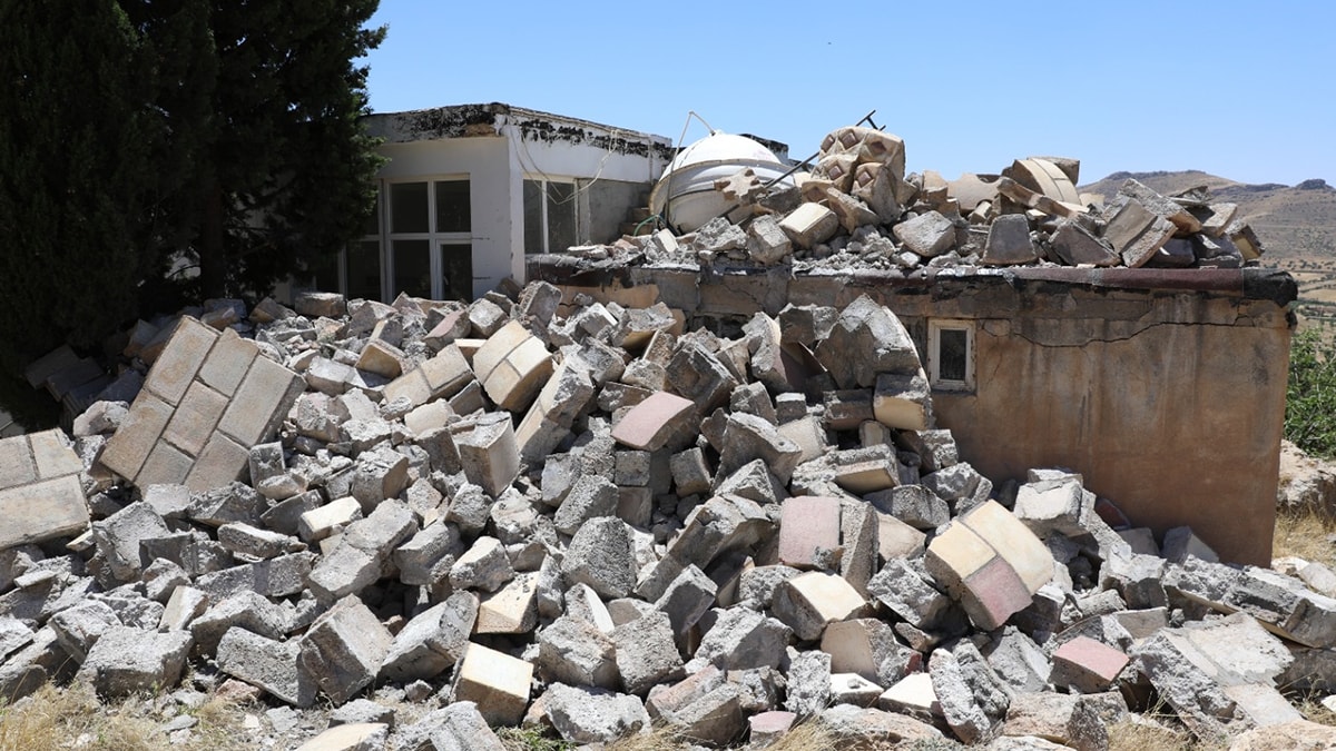 Mardin’in Yeşilli ilçesi Küme Evleri Mahallesi'nde dün akşam saatlerinde etkili olan kuvvetli rüzgar nedeniyle Nahras Camisi’nin minaresi yıkıldı.