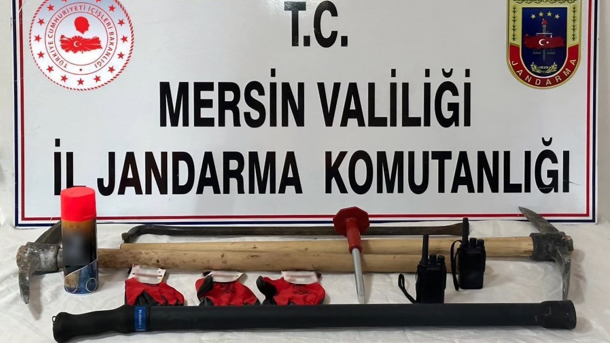 Kazı alanında kazma, kürek, çekiç ve telsiz ele geçirildi.