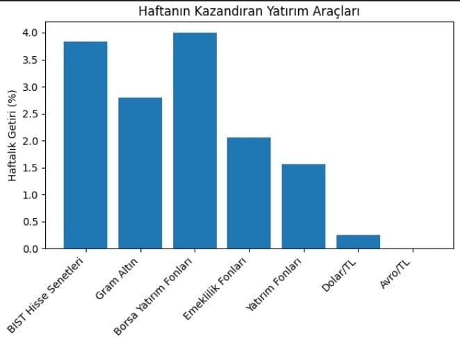 Yatırım fonları bu hafta yüzde 1,56, emeklilik fonları ise yüzde 2,06 oranında değer kazandı. Kategorilere göre incelendiğinde, yatırım fonları arasında en fazla kazandıranlar yüzde 4 getiriyle “borsa yatırım” fonları oldu.