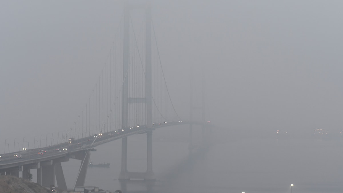 Sis nedeniyle görüş mesafesinin azaldığı Osmangazi Köprüsü'nü kullanan sürücülere dikkatli seyretmeleri konusunda trafik işaretçileriyle uyarıda bulunuldu.