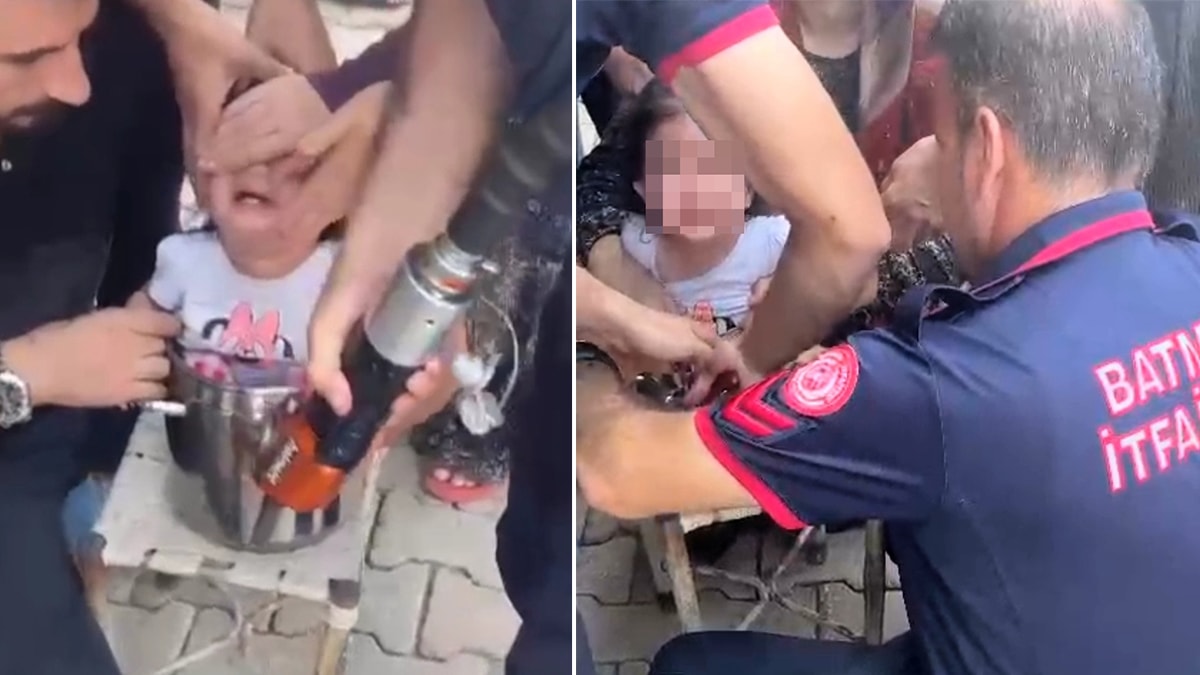 Olay yerine Batman Belediyesi itfaiye ekipleri sevk edildi. İtfaiye ekipleri, düdüklü tencereyi penseyle keserek Eslem’i sıkıştığı yerden çıkardı.