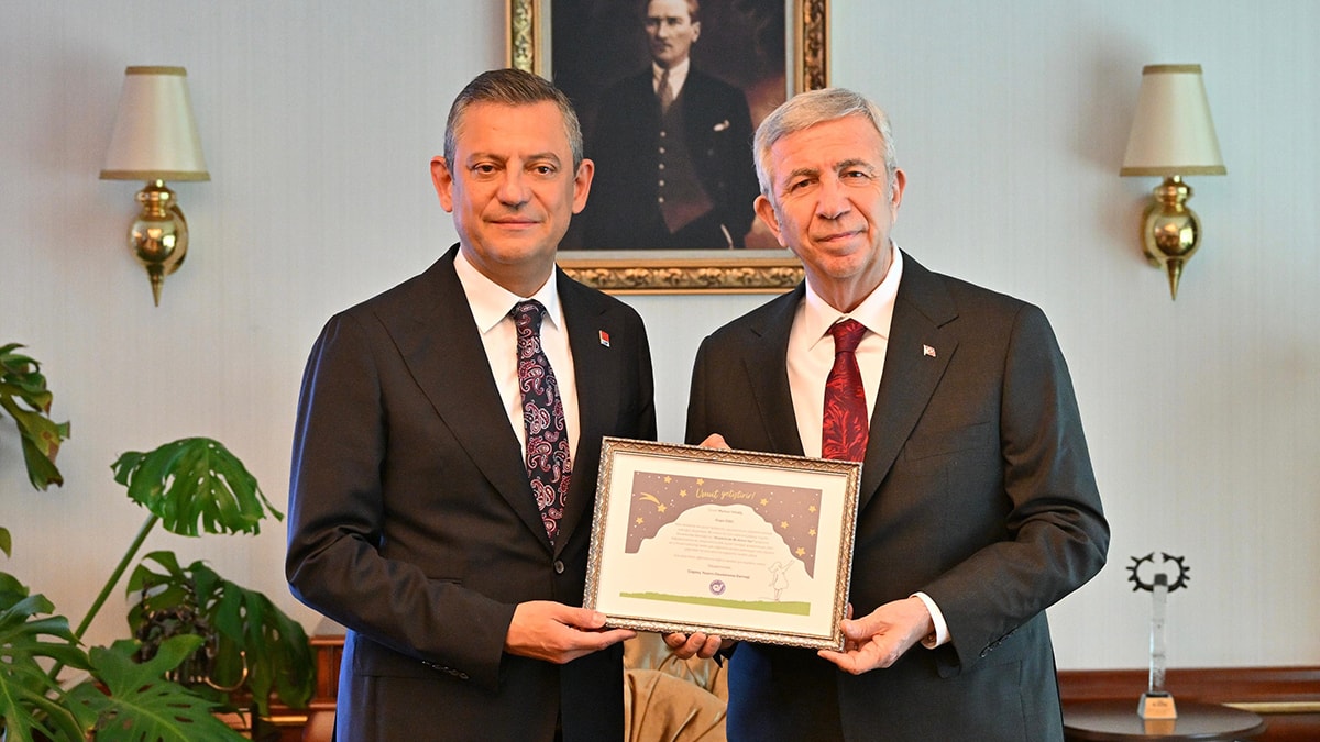 Özel de Yavaş'a, Çağdaş Yaşamı Destekleme Derneği’ne yaptığı bağışın sertifikasını hediye etti. Özgür Özel, sertifikayı verirken, "Çağdaş Yaşamı Destekleme Derneği'ne, Sayın Başkanımızın yeniden seçilmesini kutlamak için onun adına öğrencilere burs verilmek üzere bağış yaptık. Hayırlı uğurlu olsun yeni dönemi" ifadelerini kullandı.
