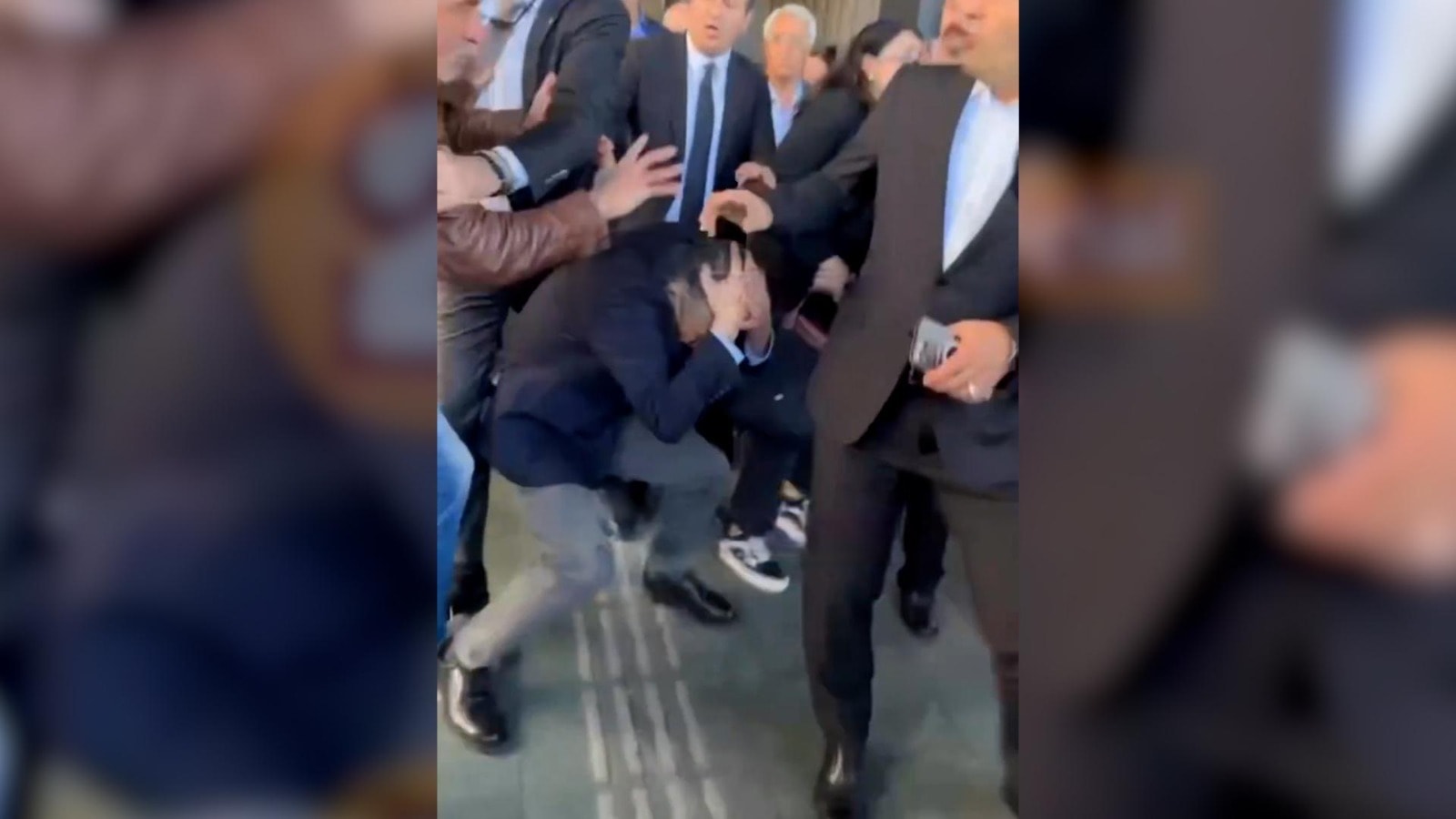Özel'in saldırı sonrası başını tuttuğu ve korumalarının araya girdiği görüldü.