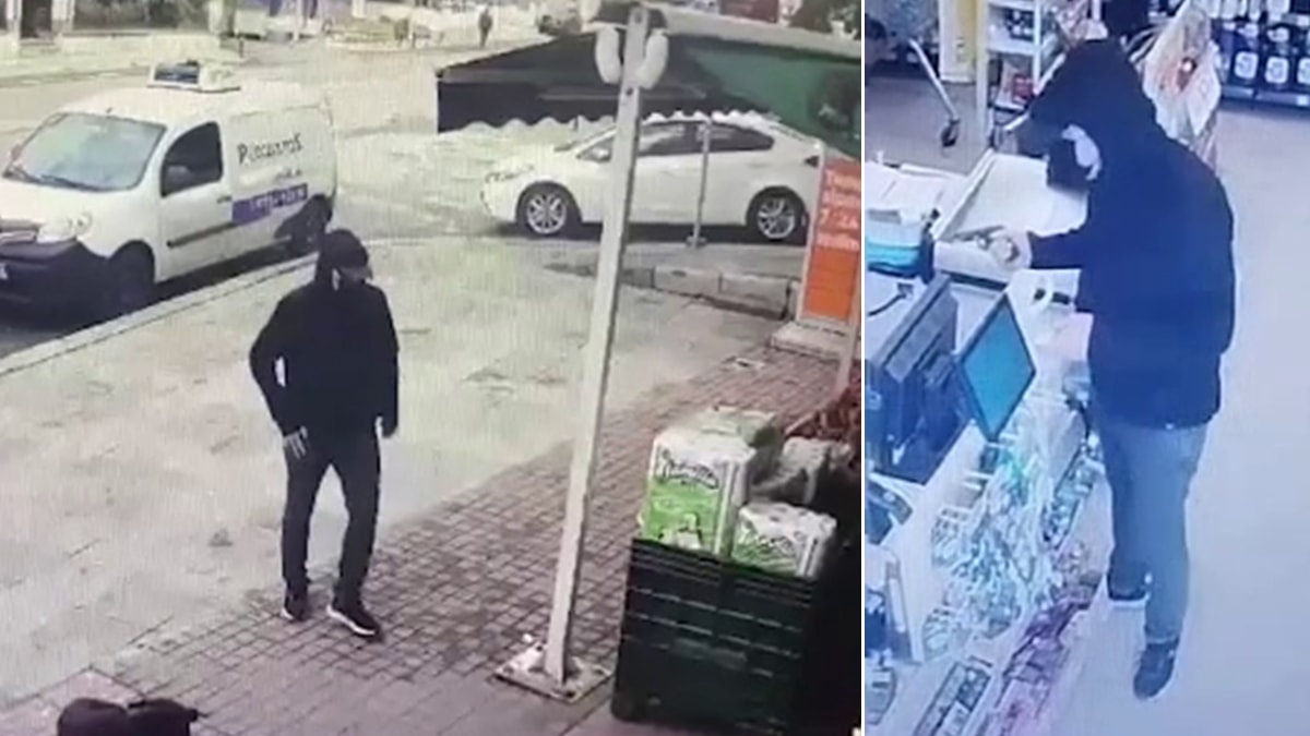 Marketin güvenlik kameralarını inceleyen ekipler, maskeli ve kapüşonlu bir şüphelinin sigara alma bahanesiyle geldiği markette, belinden çıkardığı tabancayla kasiyer T.D'yi tehdit ettiği, ardından havaya 1 el ateş edip kasadaki 4 bin 500 lira ile sigaraları alıp kaçtığını belirledi.
