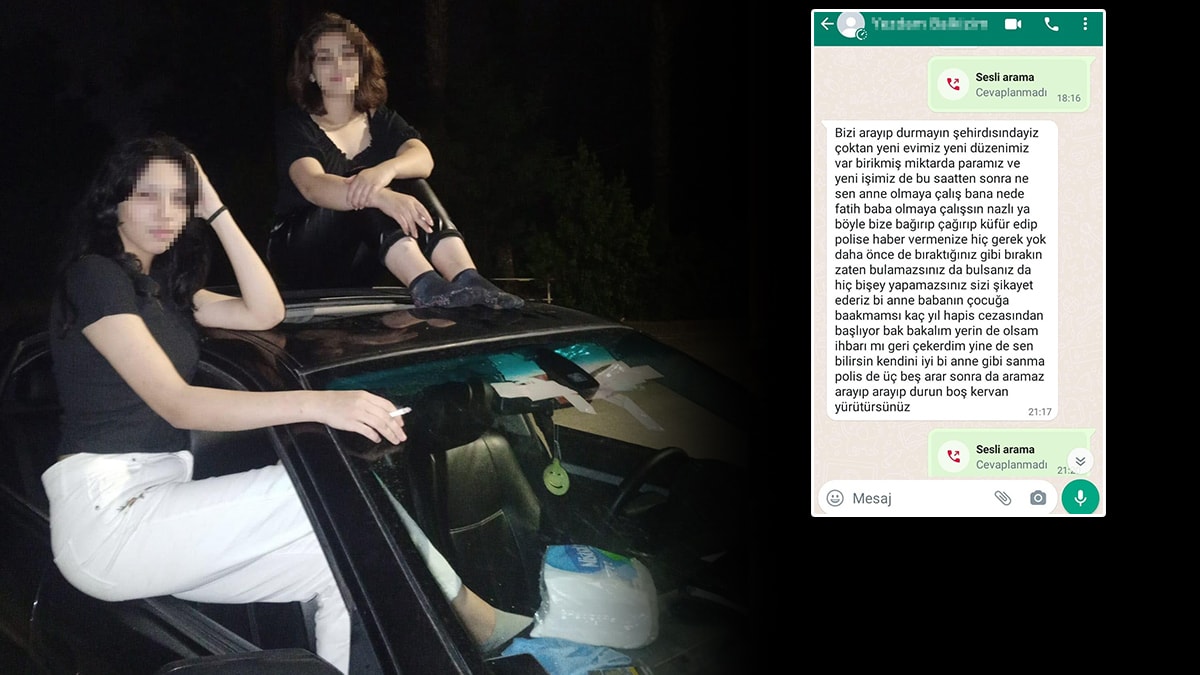 Ailelerinin ulaşmaya çalıştığı kızlardan Nazmiye Ç., annesi Rukiye Ç.'ye Whatsapp üzerinden, "Bizi arayıp durmayın şehir dışındayız. Çoktan yeni evimiz, yeni düzenimiz, birikmiş miktarda paramız ve yeni işimiz de var. Bu saatten sonra ne sen anne olmaya çalış bana ne de Fatih baba olmaya çalışsın. Nazlıya da böyle bize bağırıp, çağırıp küfür edip polise haber vermenize hiç gerek yok. Daha önce de bıraktığınız gibi bırakın. Zaten bulamazsınız da bulsanız da hiçbir şey yapamazsınız. Sizi şikayet ederiz. Bir anne, babanın çocuğa bakamaması kaç yıl hapis cezasından başlıyor bak bakalım. Yerinde olsam ihbarımı geri çekerdim. Yine de sen bilirsin. Kendini iyi bir anne gibi sanma, polis de 3-5 gün bizi arar sonra da aramaz. Arayıp arayıp durun, boş kervan yürütürsünüz" mesajını attı.
