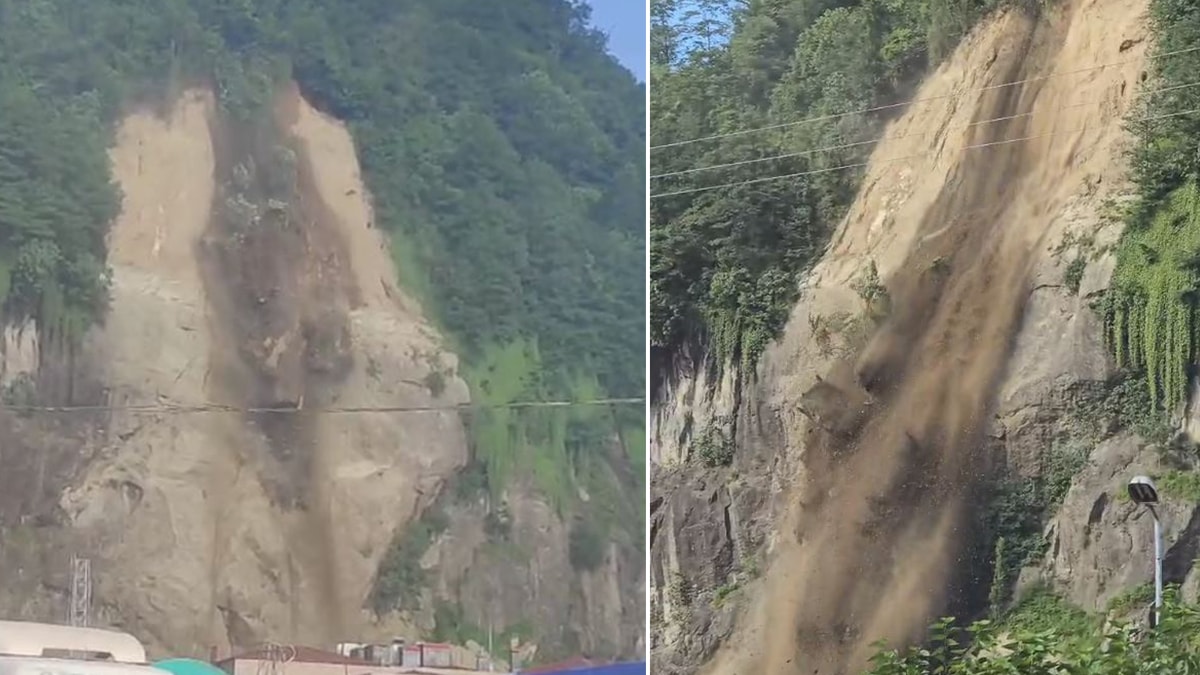 Toprağın kaydığı anlar da çevredekiler tarafından cep telefonu kamerasıyla kaydedildi. Görüntülerde, dik yamaçtaki toprağın hızla aşağıya doğru hareket ettiği, çevreyi toz bulutu kapladığı yer aldı.