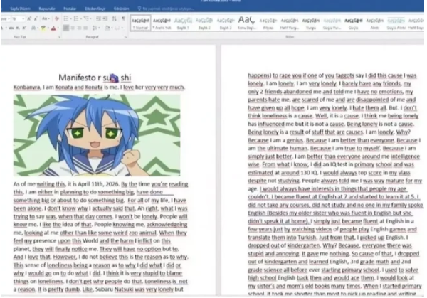 Kahramanmaraş’ta biri öğretmen 10 kişinin hayatını kaybettiği okula saldırıyı düzenleyen 14 yaşındaki İsa Aras Mersinli’nin katliamdan günler önce İngilizce olarak kaleme aldığı notlar ortaya çıktı. Saldırganın kendisini herkesten zeki olarak görmesi ve kendisini üstün insan olarak tanımlaması dikkat çekti.